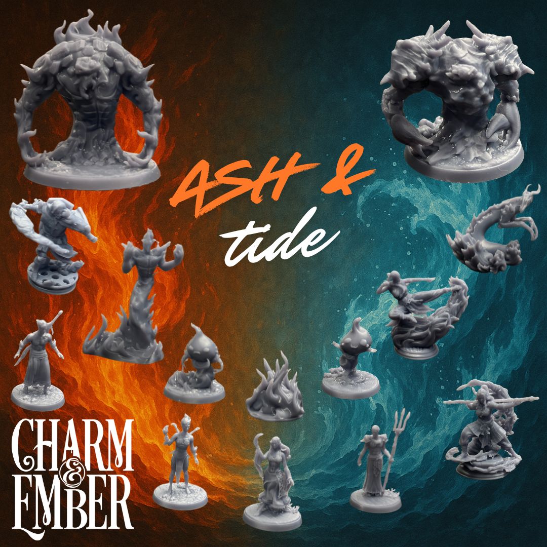 From volcanic fury to crashing waves, the Ash & Tide pack brings molten chaos and oceanic wrath to your tabletop. Once the fiery half of our Elemental series, this collection pairs perfectly with Gale & Grit (Earth & Wind) to complete the full cycle — a storm-forged showcase of the raw forces that shape worlds and ruin DMs’ encounter balance.